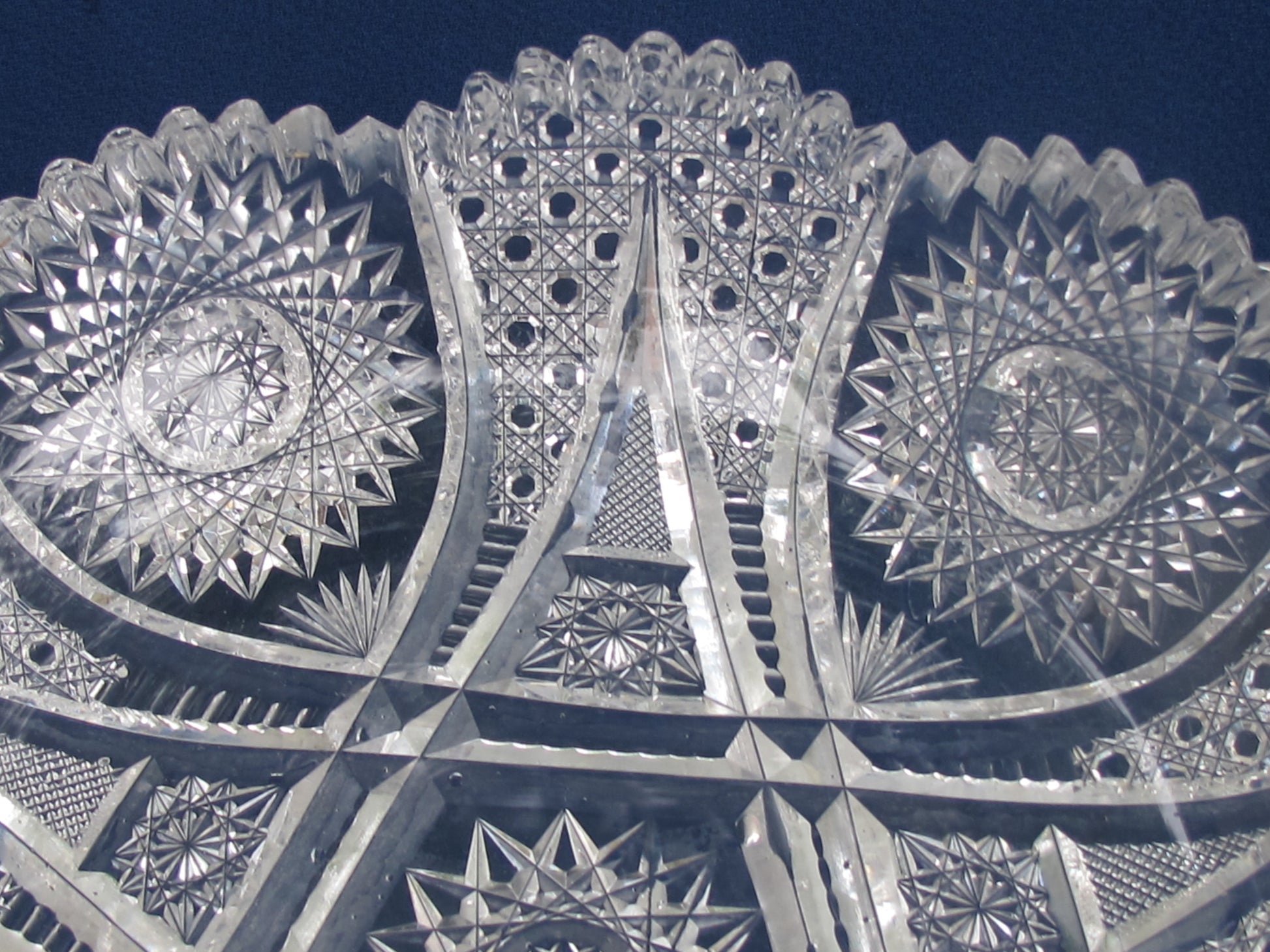 American Brilliant Period Cut Glass low bowl Antique Sharp