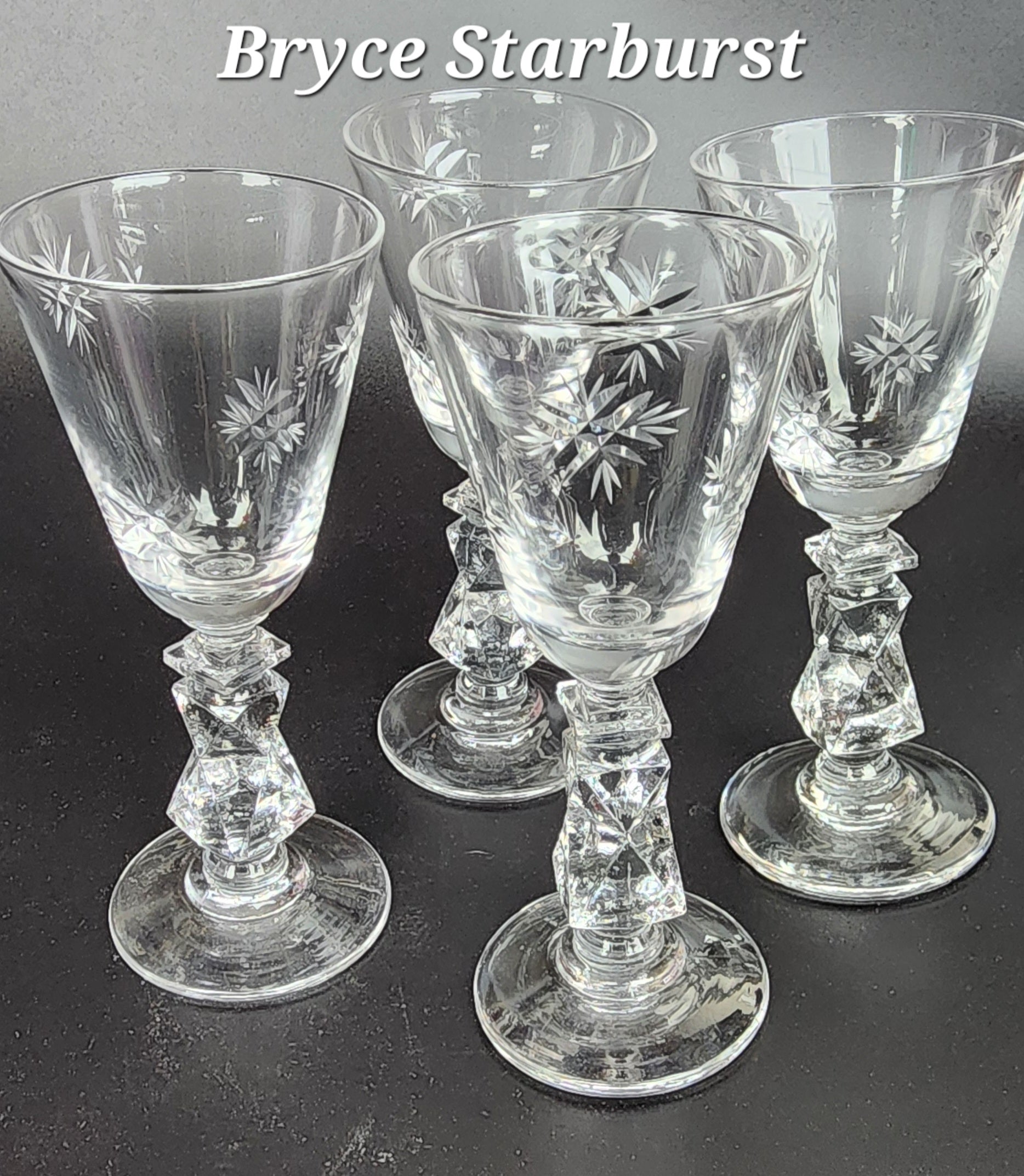 4 Hand cut Bryce cordial glass in their Starburst pattern