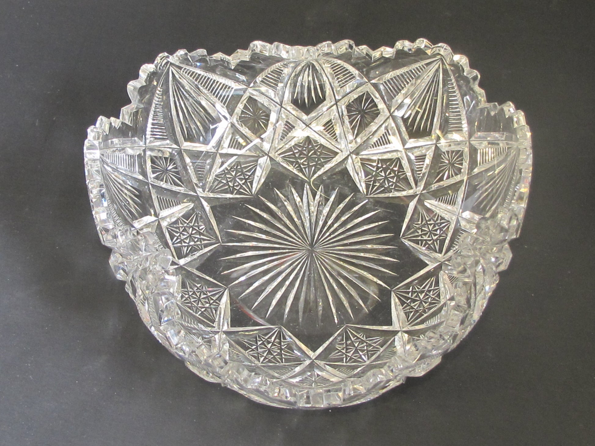 American Brilliant Period hand Cut Glass Three sided crimped dish abp