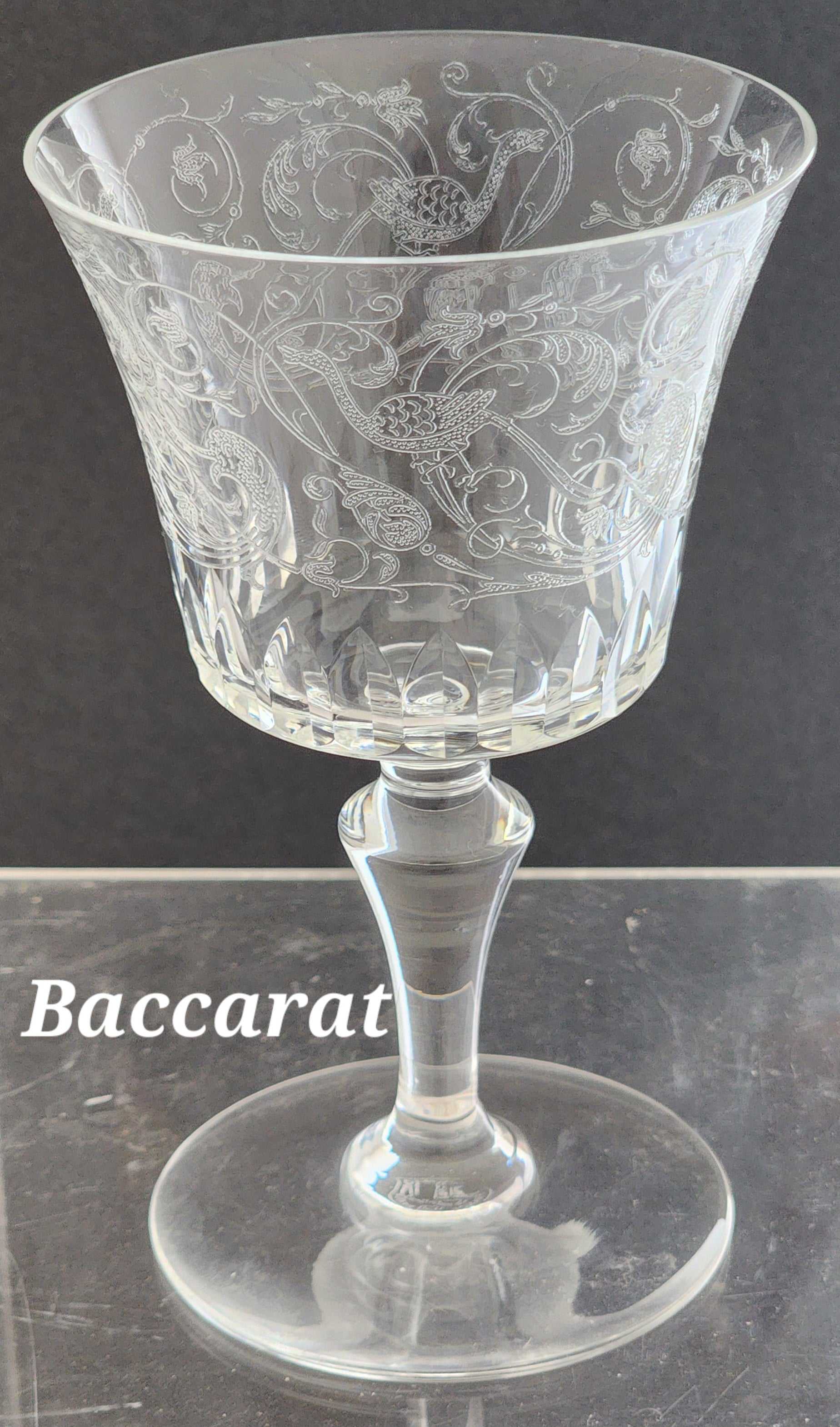Cut glass and etched goblet Parme Baccarat SIGNED