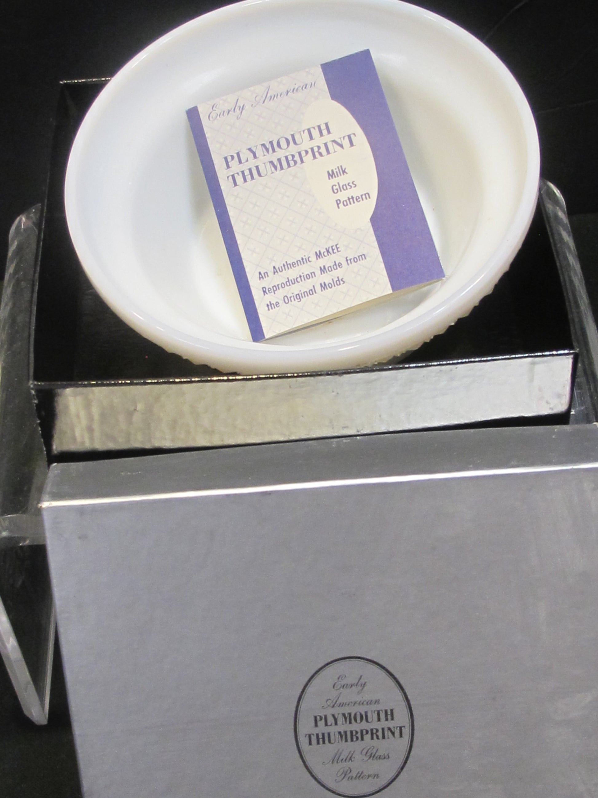 Early American Plymouth Thumprint Milk Glass bowl McKEE