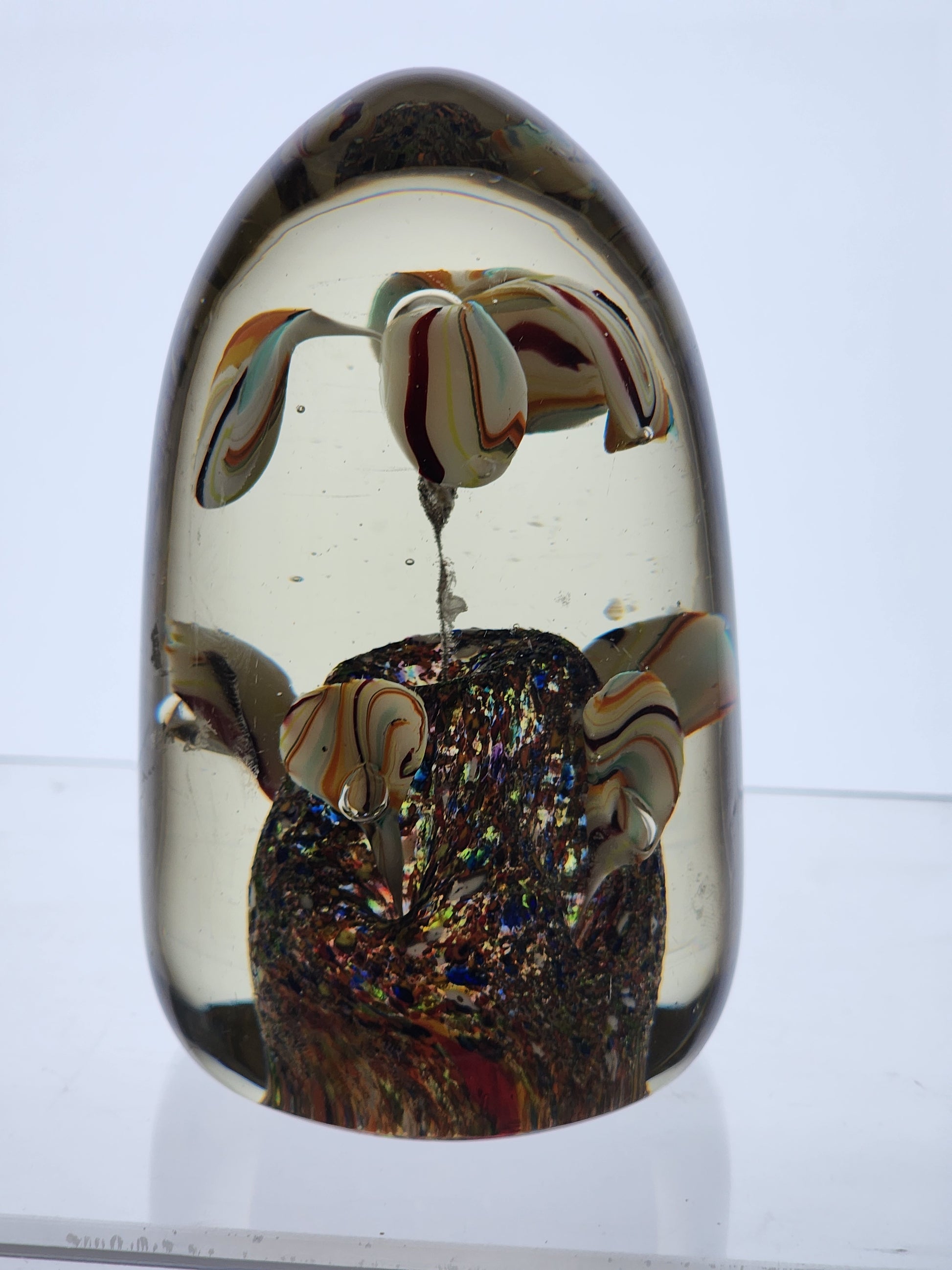 PAPERWEIGHT is 4.25" tall 2.375" indiameter.Hand crafted with precision and care, paperweight is a stunning addition to any desk or display, making it a unique and exquisite work of art. Add a touch of elegance to your office or home with this beautiful flame paperweight.